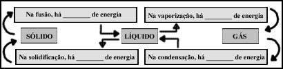 As mudanças de fase possíveis são: fusão e solidificação na mudança entre sólido e líquido; ebulição ou vaporização e condensação, na mudança entre líquido e vapor; e sublimação na mudança entre sólido e vapor. Exercícios