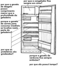 Ao responder às questões seguintes, você terá oportunidade de pensar sobre o que já sabe a respeito do funcionamento de uma geladeira. Anote as respostas dadas agora e compare com as que você dará a essas mesmas questões, após estudar e fazer as atividades previstas neste módulo. 1- As funções hoje desempenhadas pelas geladeiras e freezers eram, ao menos parcialmente, atendidas por outros recursos ou técnicas, antes da invenção desses aparelhos? 2- Mais ou menos, em que época você acha que foi inventada a geladeira? 3- Troque idéias com seus colegas para responder às questões indicadas na figura abaixo: