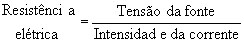 A potência elétrica desenvolvida por uma fonte depende da intensidade da corrente elétrica e da tensão da fonte, que é determinada pelas características próprias da fonte. Mas o que determina o valor da intensidade da corrente que flui por um circuito elétrico? A intensidade da corrente elétrica, com certeza não pode ser determinada apenas pelas características da fonte, pois à mesma fonte podemos conectar vários circuitos a fim de obter valores distintos da intensidade da corrente elétrica. Por exemplo, podemos ligar uma lâmpada de 60W a uma tomada de 120V, e a corrente que fluirá pela tomada será de 0,5A. No entanto, quando ligamos duas lâmpadas à mesma tomada, uma corrente de 1A flui pela tomada. Esse exemplo mostra que o valor da intensidade da corrente elétrica num circuito é uma característica que pertence ao circuito como um todo, e que está distribuída, em maior ou menor grau por todas as partes do circuito. Chamamos a essa característica de resistência elétrica, pois ela serve para indicar o grau de dificuldade que o circuito opõe à circulação da corrente. Mantendo-se fixa a fonte de tensão, devemos associar circuitos mais resistentes àqueles em que circulam as correntes menores. Isso sugere definirmos a resistência elétrica como a razão entre a tensão da fonte e a intensidade da corrente que a atravessa, ou seja:
