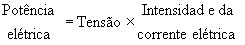 O intervalo de tempo necessário para que uma unidade de carga (1 Coulomb) passe pela fonte será maior ou menor, segundo o valor da intensidade da corrente. De fato, se a intensidade da corrente for 10A, são necessários apenas 0,1 segundo para que 1,0 C de carga circule pelo interior da fonte. Se a intensidade da corrente for 0,1 A, então, serão necessários 10 segundos para que 1,0 C de carga circule pela fonte. Nos dois casos, a fonte transfere a mesma quantidade de energia para o circuito externo. No entanto, ela não o faz com a mesma rapidez: a potência elétrica desenvolvida, isto é, a taxa de fornecimento de energia elétrica ao circuito externo é tanto maior quanto maior for a corrente, pois, nesse caso, o intervalo de tempo é proporcionalmente menor. Concluindo, existe uma relação simples entre a potência elétrica (medida em Watts), a tensão da fonte (medida em Volts) e a intensidade da corrente elétrica que flui pelo circuito (medida em Ámpères):